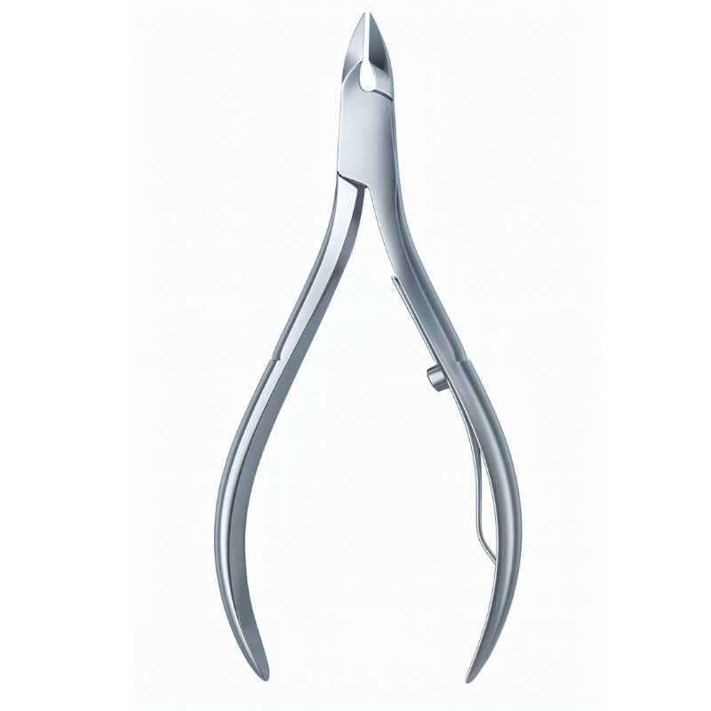 Angled Blade Cuticle Clippers are crafted for precision trimming of cuticles and hangnails. Their sharp tips and spring-loaded handles ensure smooth, controlled cuts for professional nail care.