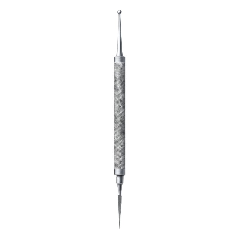 The Ball Probe & Sharp Tip Black Head Remover is a precision skincare tool designed for targeted pore cleansing. One end features a rounded ball probe for gentle tactile examination and surface-level extractions, while the opposite sharp angled tip allows for pinpoint access to deep-seated blackheads. This combination supports safe and effective extractions across delicate areas like the nose creases and brow line.