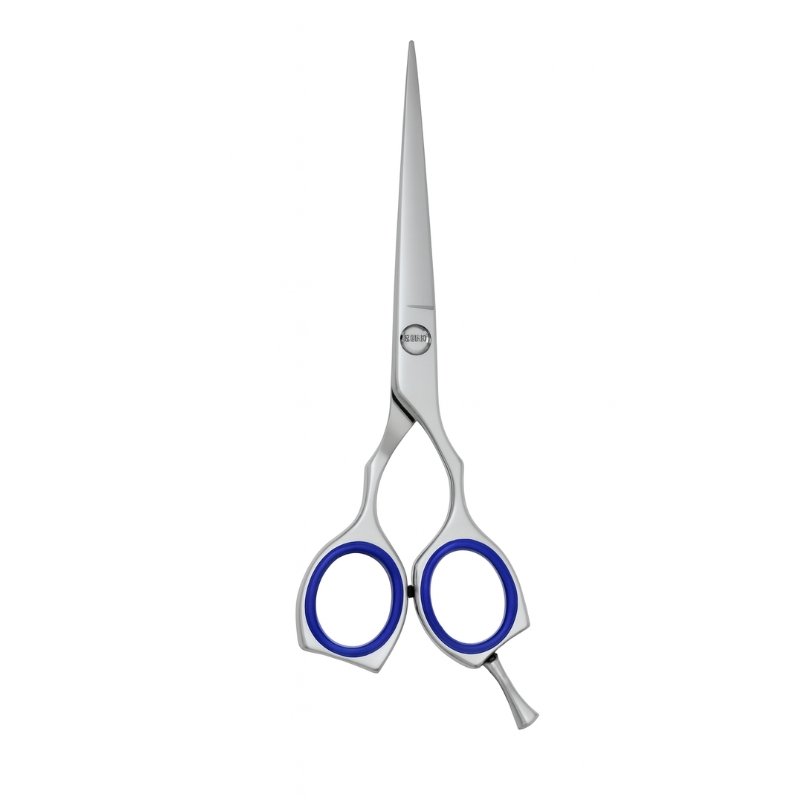Metalta Blue Grip Pro Hair Cutting Scissors are designed for stylists who prioritize precision and comfort. Featuring a polished stainless steel body and long, straight blades, these scissors deliver clean, accurate cuts ideal for detailed trimming and styling. The blue rubber inserts in the finger holes provide a cushioned, non-slip grip, while the integrated finger rest enhances control and reduces fatigue during extended use.