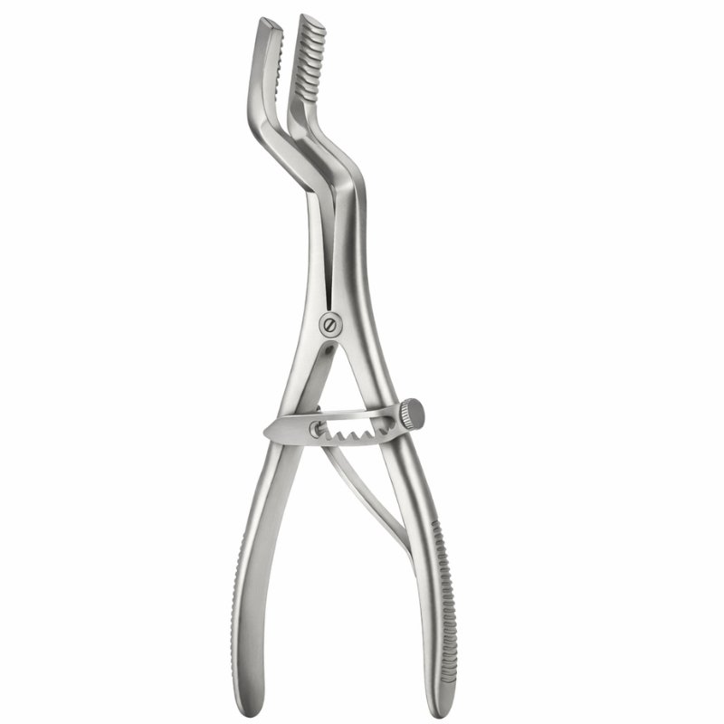 The Bone Forceps Mouth Retractor is designed for precision in oral and surgical procedures. Its serrated jaws provide a secure grip on bone or tissue, while the ratchet mechanism locks the instrument in place, eliminating the need for continuous manual effort. The scissor‑style handle allows easy handling and controlled application by the practitioner.