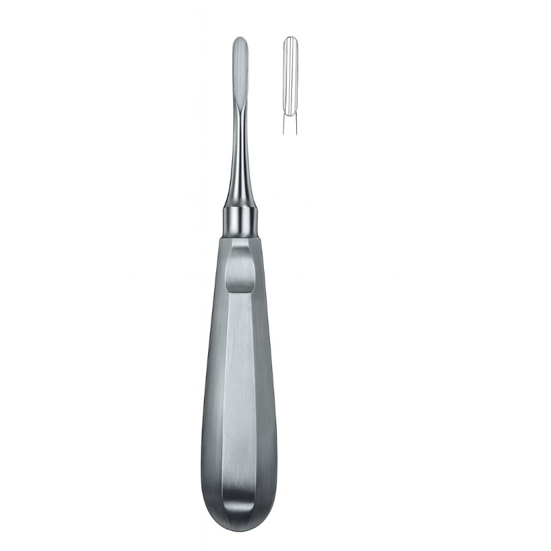 Crafted from high-quality stainless steel, this root elevator is corrosion-resistant, easy to sterilize, and built for repeated use. The ergonomic handle ensures superior grip and comfort, reducing hand fatigue while providing precise control. This instrument is an essential addition to both general dentistry and specialized oral surgery toolkits.