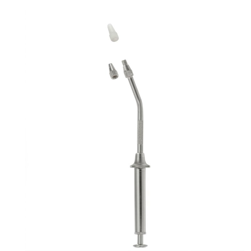 The Detachable Tip Amalgam Syringe is a specialized instrument designed for precise placement of amalgam into prepared cavities. Featuring multiple detachable tips, it allows dental professionals to adapt the syringe for different clinical needs, ensuring controlled delivery of restorative material. The plunger mechanism provides smooth dispensing, making procedures efficient and reliable.
