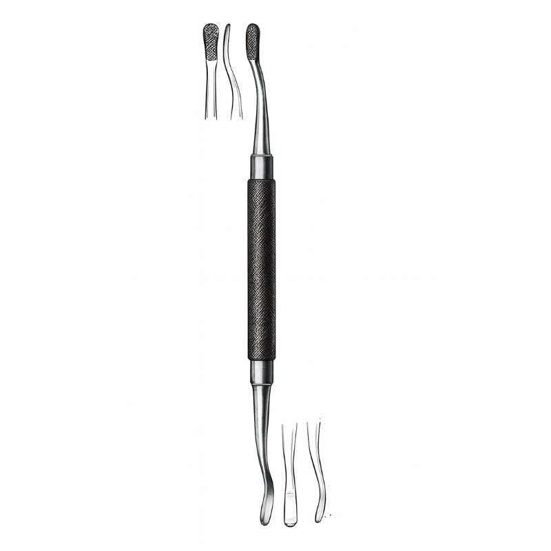 Crafted from high-quality stainless steel, this bone file is corrosion-resistant, easy to sterilize, and built for repeated use. The textured ergonomic grip ensures firm handling and comfort, reducing hand fatigue while providing precise control. This instrument is an essential addition to dental and orthopedic surgical toolkits.