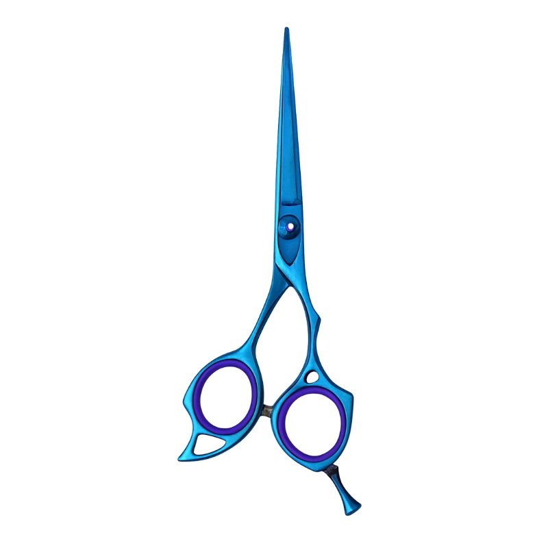 Metalta Duo Tone Control Hair Cutting Scissors are designed for stylists who demand both visual impact and ergonomic excellence. With a sleek metallic blue finish and vibrant purple accents, these scissors deliver clean, precise cuts while making a bold statement in any grooming setup. The unique triple-loop handle design and extended finger rest provide enhanced grip and maneuverability, ideal for long hours of professional use.
