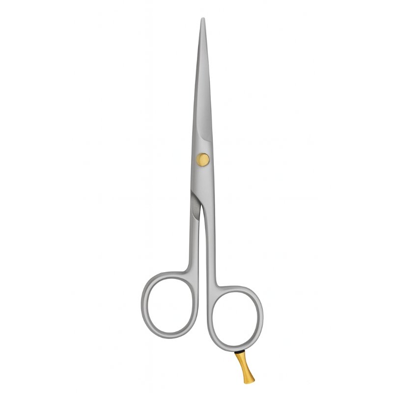 Metalta Gold Tip Precision Scissors are crafted for professionals who require meticulous control in every cut. Featuring narrow, pointed blades and a polished stainless steel finish, these scissors are ideal for detailed grooming or medical tasks. The gold-colored pivot screw and finger loop tip add a refined touch, enhancing both grip and visual appeal. Their symmetrical design ensures balanced handling, making them a trusted tool for high-precision work.
