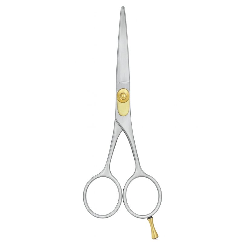 Metalta Precision Gold-Tipped Hair Cutting Scissors are engineered for professionals who demand accuracy, comfort, and style. Made from premium stainless steel, these scissors feature a sleek, straight blade ideal for clean, sharp cuts. The ergonomic handle design with dual finger holes ensures optimal grip and reduced hand fatigue during extended use. Gold accents on the pivot screw and finger rest add a touch of luxury, making them not only a tool but a statement of craftsmanship.