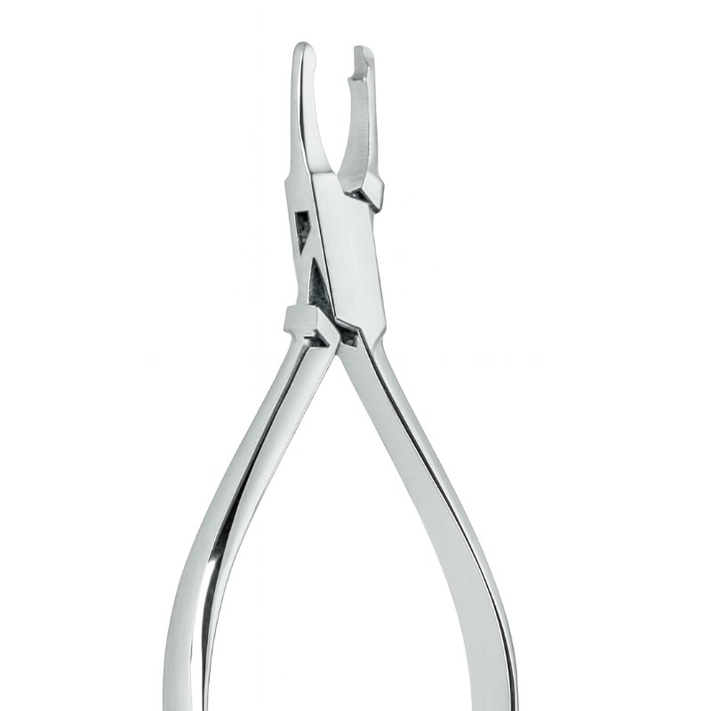 This orthodontic plier is designed for gripping and manipulating brackets during placement and adjustment procedures. The specialized jaws provide a firm hold, allowing practitioners to position brackets accurately without slippage. Its joint mechanism ensures precise control and consistent pressure application, making it ideal for delicate orthodontic tasks.
