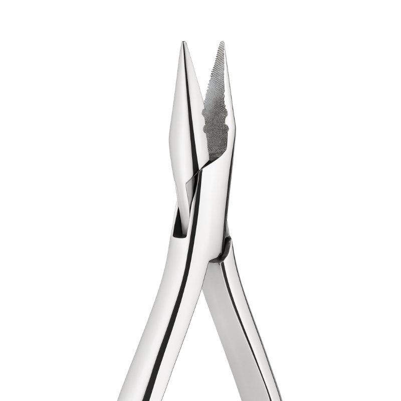 This orthodontic instrument is designed for secure gripping and removal of teeth during dental procedures. The serrated beaks conform to the natural shape of the tooth, providing a firm hold that ensures safe and effective extraction. Its specialized design makes it indispensable for oral surgery and orthodontic treatments requiring precision.