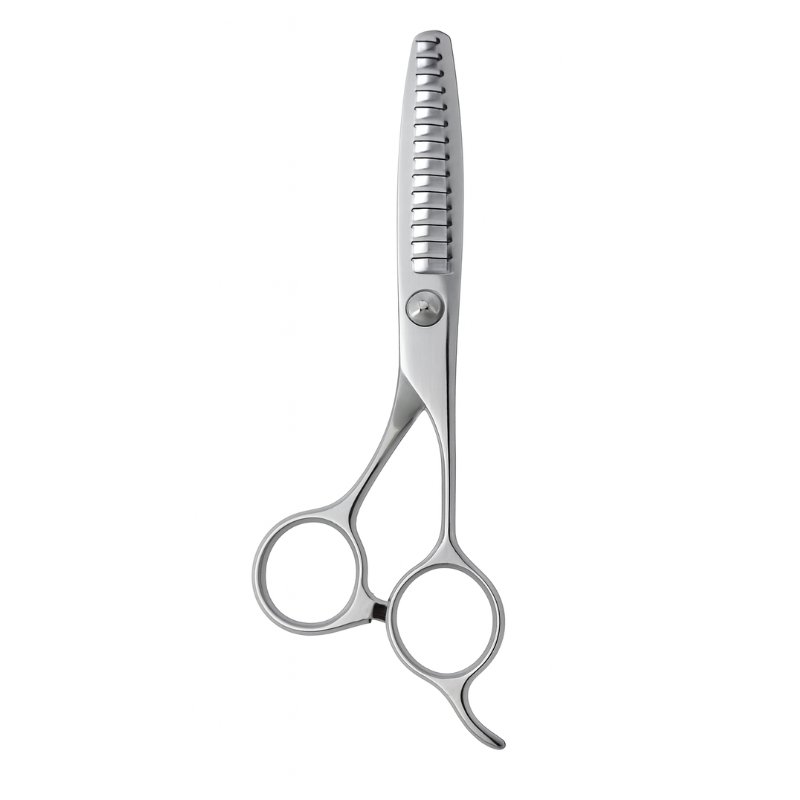 Metalta Stainless Thinning Scissors are designed for hairstylists who value precision and comfort. The notched blade selectively removes strands while the smooth blade ensures clean, seamless thinning—perfect for reducing bulk and creating natural transitions. The ergonomic handle includes two finger holes and a built-in finger rest for enhanced grip and control during extended styling sessions.