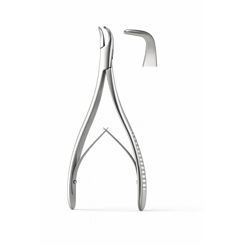 Crafted from high-quality stainless steel, this rongeur is corrosion-resistant, easy to sterilize, and built for repeated use. The ergonomic textured handle ensures comfort and control, reducing hand fatigue while allowing precise manipulation during demanding surgical procedures. This instrument is an essential addition to both dental and orthopedic surgical toolkits.