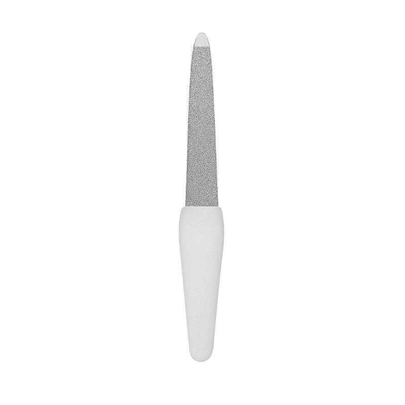 The Tapered White Handle Nail File is a precision grooming tool designed for clean, accurate nail care. Its pointed tip allows for gentle cleaning beneath nails and cuticle refinement, while the textured surface delivers smooth contouring of fingernails and toenails. The tapered metal body supports detailed filing with minimal effort.
