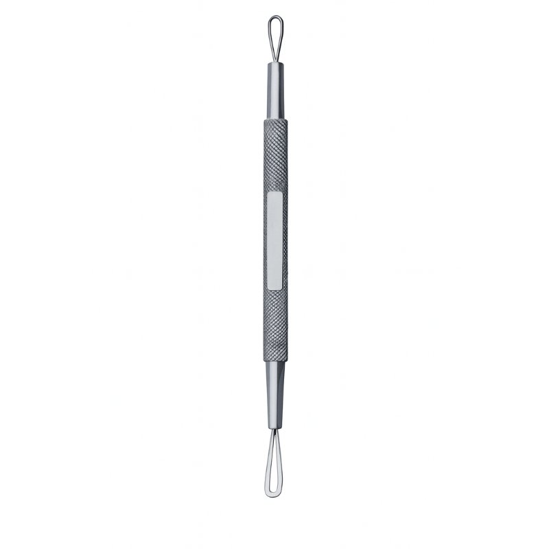 The Wire Loop Twin End Black Head Remover is a dermatologist-grade tool designed for safe and effective pore cleansing. Each end features a fine wire loop that gently lifts blackheads and whiteheads without damaging surrounding skin. Its slim profile allows for easy access to congested areas like the nose, chin, and forehead.